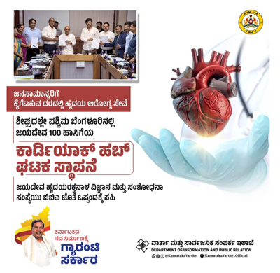 Bengaluru, April 24 — In a significant step toward decentralizing cardiac healthcare, the Sri Jayadeva Institute of Cardiovascular Sciences and Research (SJICS&R) on Friday signed a Memorandum of Understanding with the Greater Bengaluru Authority (GBA) to establish a 100-bed Jayadeva satellite unit at Govindarajnagara in west Bengaluru — fulfilling a key promise from Chief Minister Siddaramaiah's state budget.