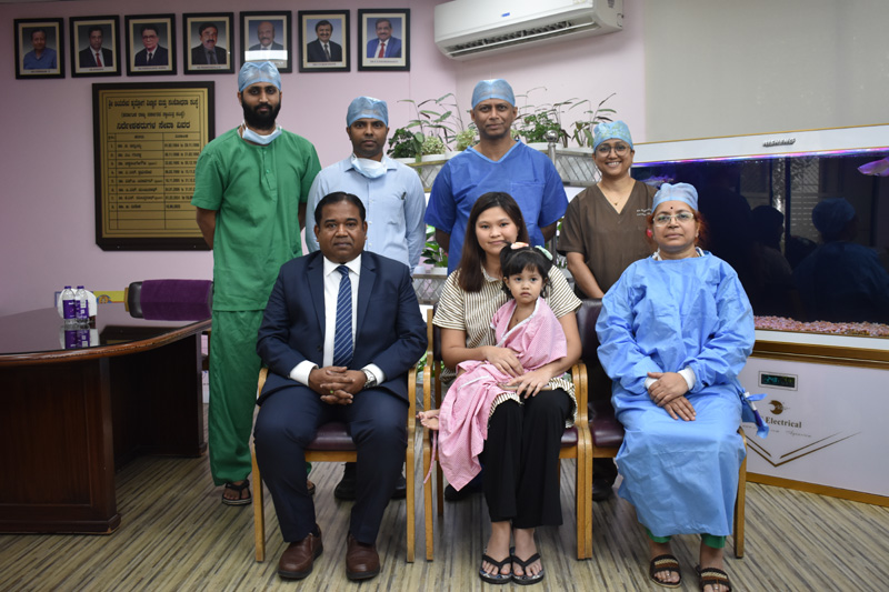 Photo: Dr. B.Dinesha, Director, SJICR, Dr. Sunil.P.K. Professor of CTVS, Dr. Rashmi Dr. Hareesh Mahabalamukri, and Dr. Parimala prasannasimha Cardiac Anaesthesiologist) along with patient Aviannaiyn Jade Amoroso Rey baby along with her mother.
